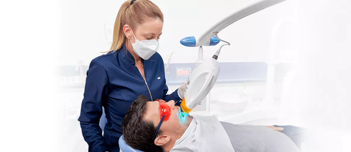 El blanqueamiento dental es un tratamiento cosmético que consiste en la despigmentación del diente mediante la aplicación de productos químicos, que penetra hasta la dentina, oxida los pigmentos, descomponiendo las partículas de Oxigeno y partículas colorantes, obteniendo así dientes de color más blanco y brillante.